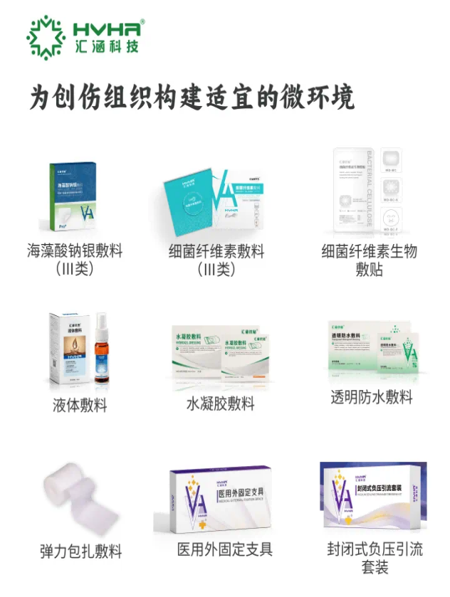 本次展會上,匯涵科技隆重推出了兩款全新的Ⅲ類醫(yī)療器械產(chǎn)品——匯涵皮纖生?細(xì)菌纖維素敷料和匯涵優(yōu)貼?海藻酸鈉銀敷料,成為展會的一大亮點。匯涵皮纖生?細(xì)菌纖維素敷料是凝膠狀生物敷料金標(biāo)準(zhǔn),適用于深Ⅱ度燒傷創(chuàng)面的覆蓋及淺表性創(chuàng)面、燒傷創(chuàng)面、手術(shù)后縫合創(chuàng)面、慢性創(chuàng)面等創(chuàng)面的滲液吸收;匯涵優(yōu)貼?海藻酸鈉銀敷料則是外用抗生素敷貼金標(biāo)準(zhǔn),采用全新一代專利技術(shù),能夠高效吸收傷口滲液,實現(xiàn)物理抑菌抗感染,可用于覆蓋存在感染風(fēng)險的傷口,如褥瘡性潰瘍、糖尿病潰瘍、Ⅱ度燒燙傷等。這兩款新產(chǎn)品的推出,不僅豐富了匯涵科技的產(chǎn)品線,更是公司在生物外科創(chuàng)傷修復(fù)領(lǐng)域技術(shù)創(chuàng)新的重要體現(xiàn),為臨床治療提供了更加安全、高效的解決方案,受到了現(xiàn)場專業(yè)人士的高度關(guān)注與認(rèn)可。