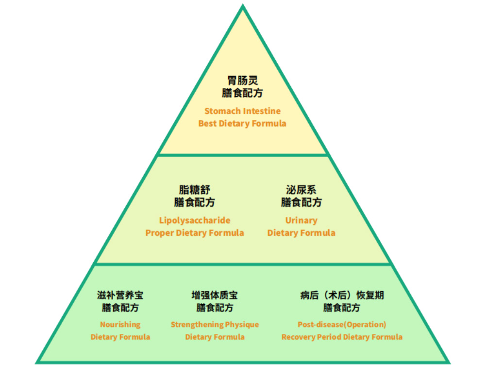 基礎(chǔ)配方:鮮肉(新鮮宰殺的白條雞及海洋魚)≥ 70%, 粗蛋白≥ 12%,粗脂肪≥ 5%,能量≥ 1320kcal/kg。